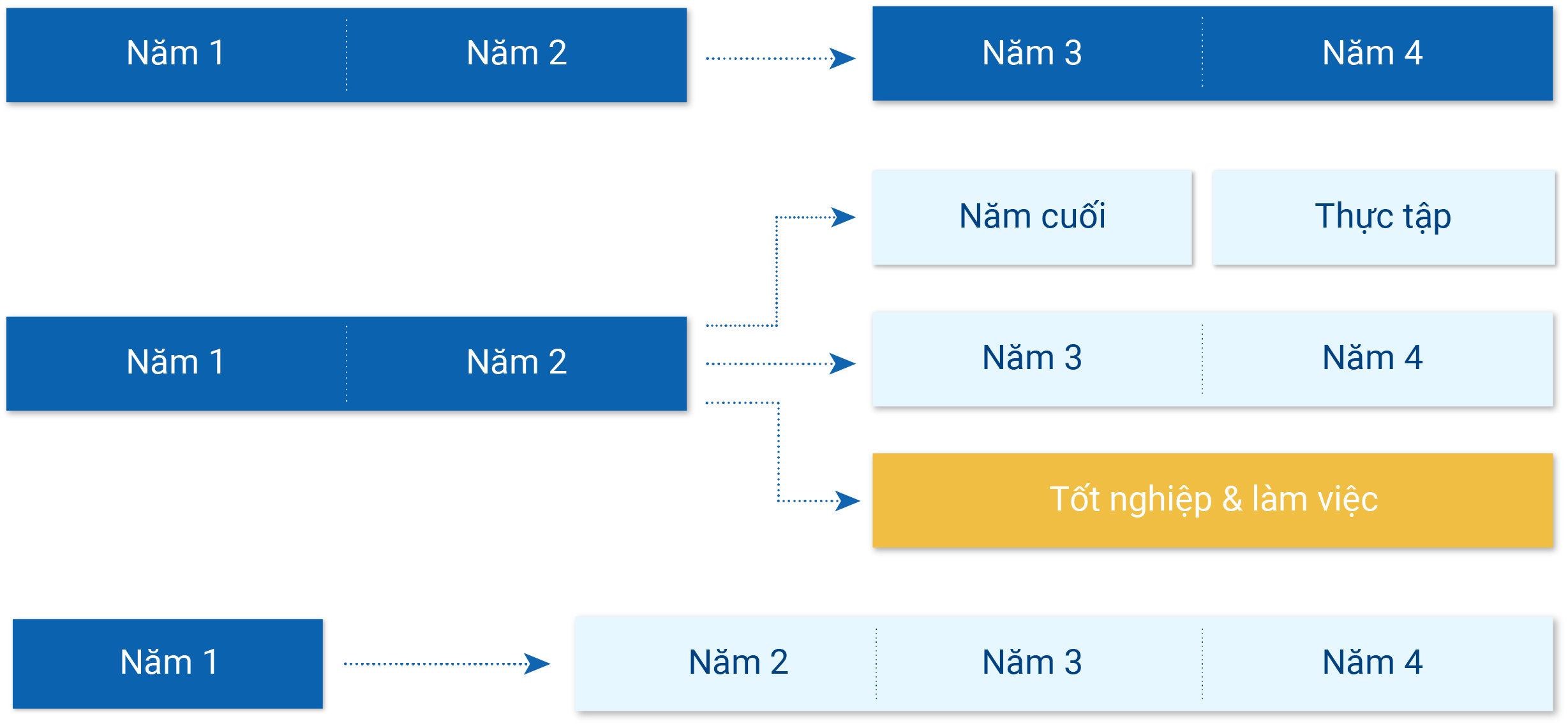 Students can choose a flexible pathway, studying either fully in Vietnam or the first 2-year in Vietnam and 2 years abroad at many universities in the U.S. or other countries.